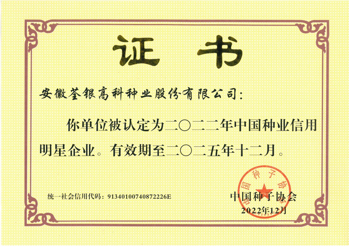 中國種業(yè)信用骨干企業(yè)